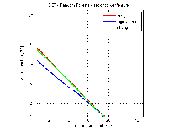 EER results for two-class classifiers and different feature sets. The standard deviations are shown in parenthesis.